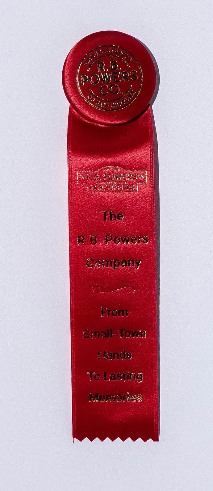 Custom rosette with 2.5″ rosette head with only the center button and a single 2″ x 8″ streamer. Total length is 9 inches. Your logo (or stock logo of your choice) is printed in the center button.